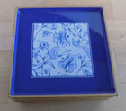 Lacquerware Coaster Set Of 5 Square W/box Blue Heron Floral Otagiri Japan Vtg
