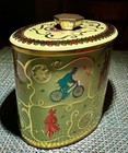 Vintage 1950’s Baret Ware Oval Tin With Knob Lid Early 1900’s Bicycle Design 6”