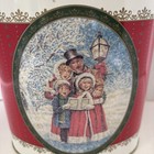 Vintage Christmas Decor Oval Tin Ftd Carol Singing Scene Brazil Metal