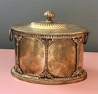 Antique Vintage Double Handled Oval Sewing Tin Storage Box Cookie Tin Victorian