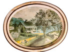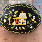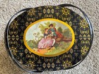 Vintage Oval Tin W Handles, Pa Dutch German Folk Art Couple, Sewing Toleware