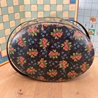 Vintage Oval Tin 2-handled Basket Sewing Box Black With Pink & Blue Florals