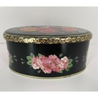 Vintage Meister Brazil Decorative Metal Tin Oval Floral Roses Black 6" X 4.5"