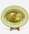 Vintage Oval Tin Tray By Daher Decorated Ware Fruit Floral Green Gold 13”x 10”