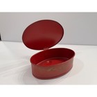 Vintage Red Floral Oval Tin Trinket Box With Handle Rosemaling
