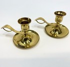 Vintage Pair Brass Candle Holders Sticks Round Base Mcm