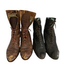 2 Pair Ladies Antique Victorian Lace-up Black Ankle & Brown Mid-calf Boots As-is