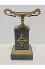Vintage Silverplate Marble Peacock Candleholder Pair Empire Style Neo Classical