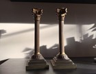 Pair Of Large Terra Cotta Roman Column Table Lamps. Shades Sold Separate.