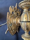 Pair Vintage Stiffel Heavy Brass Table Lamps Flame Torch Urn Trophy Shaped 38”