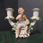 Vintage Japan Bisque Cherub Double Candle Holder Angel Candelabra Hand Painted