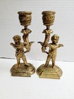 Vintage Cherub Angel Candle Holder Set Gold Cast Metal Candlesticks