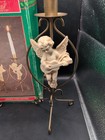 Vintage Cast Iron Painted Cherub Angel Candlestick Candle Holder