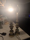 Pair Vintage Solid Heavy Brass 25.5" Table Lamps With Floral Design 3 Way Switch