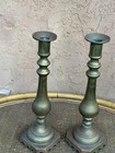 Antique Beautiful Pair Of Large Heavy Brass Candle Holders 11"high