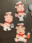 3 Vintage Googly Eyed Pig Chef Fridge Magnets