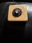 Vintage Sterling Silver & Maroon Stone Mexico Pill Trinket Box .925 1 Inch 19gr