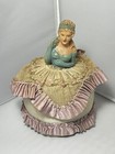 Vintage Pin Cushion Porcelain Half Doll With Lace Skirt 8" Excellent Condition