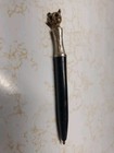 Vintage Metal & Black Plastic Miniature 3-1/4 Inch Green Glass Eyed Cat Pen