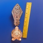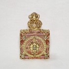 Vintage Czech Perfume Scent Bottle Peach W/ Gold Cladding Filigree & Rhinestones