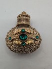 Vintage Filagree Czechoslovakia Glass Perfume Bottle With Green Stones