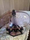 Vintage L.e. Smith Tiara Glass Etched Frosted Pink Swan Serenade Large Tray