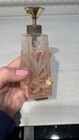 Vintage Pink Etched Frosted Glass Perfume Bottle Pyramid Triangle Bull Head