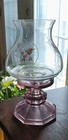 Vtg Clear Satin Painted Floral Art Glass Footed Fairy Light Lamp Votive 2 Piece