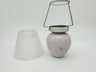 Vtg Party Tea Light Fairy Lamp White Frosted Glass Pink/purple Stone Base Mini
