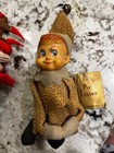 Unusual Vtg Felt Christmas Pixie Elf Knee Hugger Sitting In Boot (celluloid ?)