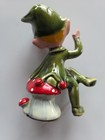 Pixie Elf Gnome Sitting On Mushroom Vintage Ceramic
