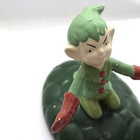 Lefton Green Red Pixie Elf Sitting On Mushroom Vintage Ceramic Figure Descript!