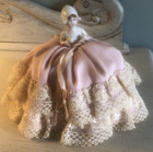 Vintage Pin Cushion Porcelain Half Doll With Lace Skirt 8" Excellent Condition