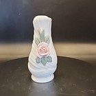 Hand Painted Rose Porcelain Vase, 4.5" Small Vtg White Pink Purple Flower Signed