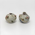 Set 2 Vintage Hand Painted White Porcelain Flower Vases Pink Rose, Leaves 6.5" H