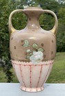 Vintage Azburg Germany Porcelain Flower Vase With Pink Roses 9.5”