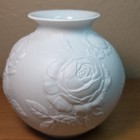 Vintage Ak Kaiser White Bisque Porcelain Vase Embossed Roses Mid-century Modern