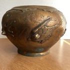 Antique Japanese Mixed Metal Bronze - Oval Vase-brass Relief-6.5 X 5.5 X 10-