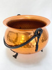 Vintage Solid Copper Hand Made Cauldron Pot With Wrought Iron Handle 5" H X 7" W