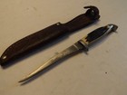 Vintage Queen Steel Fixed Blade Fillet Cutlery Knife With Leather Sheath
