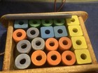 Vintage Never Used Playskool 14 Colored Wood Block Wagon