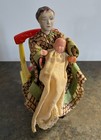 Vintage 50's Renwal 4" Mother Doll In Homemade Fabric Dress With Baby In Gown