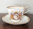 1952 Queen Elizabeth Coronation Windsor English Bone China Footed Cup & Saucer
