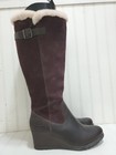 Ugg Mischa 8 Waterproof Knee Hi Boots Brown Suede & Leather Fur Cuff Wedge Heel