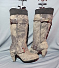 Vintage Y2k Denim Boots Distressed Grey Jean Heeled Boots Grunge Buckles Size 37