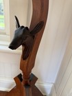 Vintage Rustic Wood Plant Stand Deer Head Carving Mcm Wooden Cabin Primitive