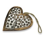 Vintage Rustic Folk Art Wooden Heart Hand Carved & Painted 2 Sides Rope Hanger