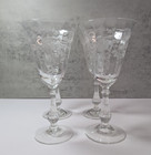 Vintage Etched Wine Glasses/water Goblets Set Of 4 W/flower & Leaf Pattern