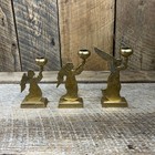 Set Of 3 Solid Brass Angel Candle Holders Christmas Decor 5.5” And 6.5” Vintage