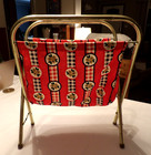 Vtg Mcm Knitting Sewing Magazine Craft Yarn Caddy Basket Bag Folding Wood Frame